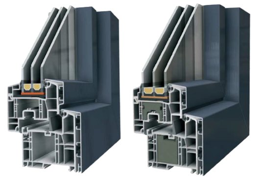 • profilo Rehau in PVC con 6 camere • 3 guarnizioni (grigio) • armatura profilo RAU-FIPRO • ferramenta Roto NT
